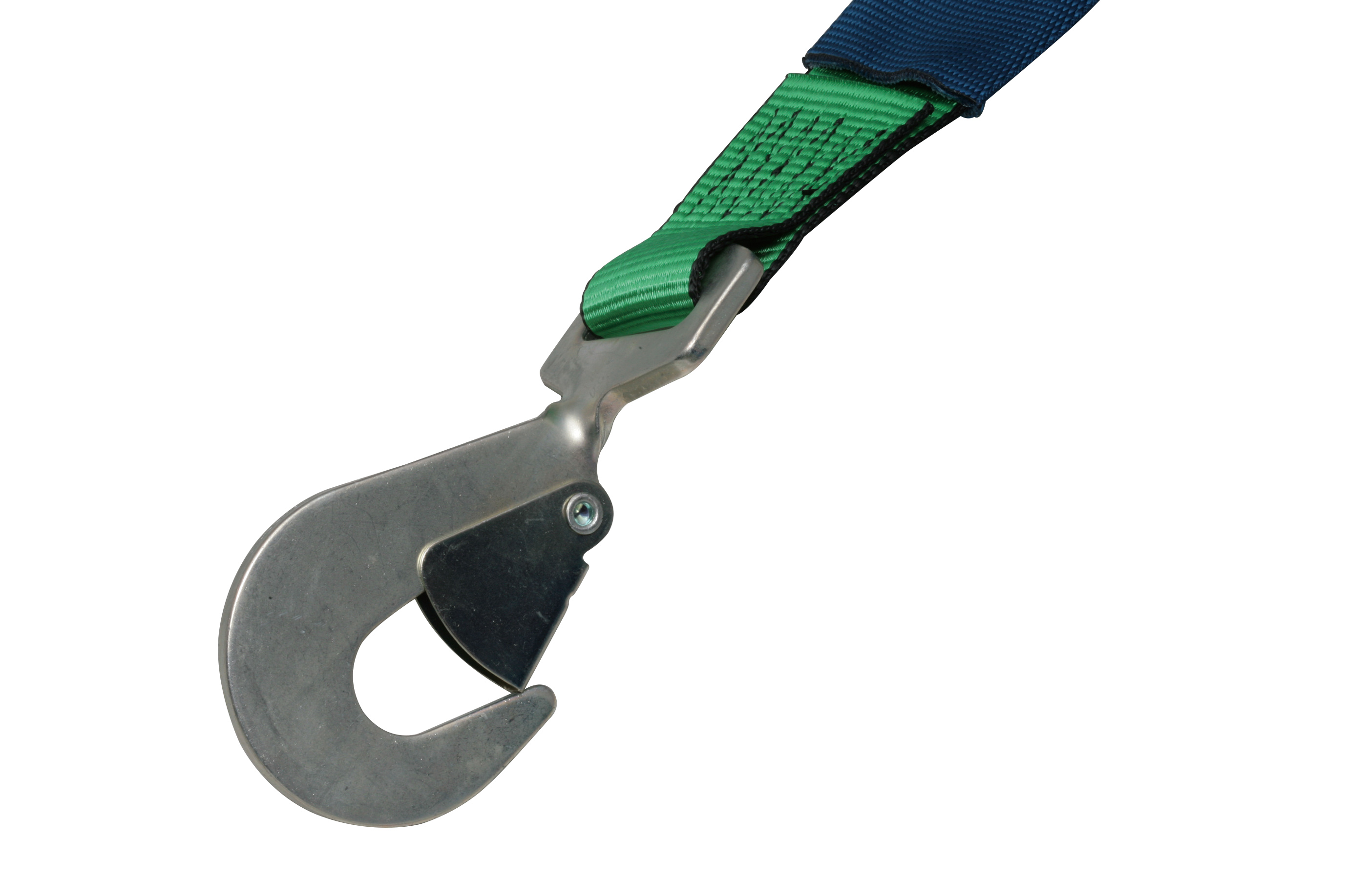 ・ラチェット式 ・先端形状:ツイストスナップフック ・最大使用荷重:1000kgf ・破断荷重:3000kgf ・ベルトサイズ:幅50mm、長さ固定側1m×調節側7m ・ベルト材質:ポリエステル